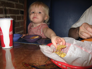 What we hear: She cracks us up with her jibber-jabber! Her pronunciations are obnoxiously cute: we often ask her to say words just to hear her say them. Our personal favorites are turtle, triangle, wink (for oink!) and kirkle (for circle)--that's the best one. She often surprises us with how much she knows--her brain is a tiny sponge of goodness.