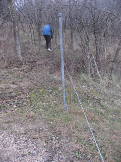 Part two of the Thanksgiving festivities involved a walk down the hill to check out how the baby grapes were doing. They were happily snuggling with their cordons. Hubby Nugget joked that it looked like a stick farm. If you click on the pic below, you can almost see the supermodel-thin grapevines. :-)
