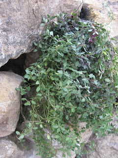 It is a boomerang shaped border for our new patio/firepit area, a work in progress. It's original intent was to accent the 60' wildflower patch, oh but now it is so much more. You see, I have exhausted all my planting options in the front yard, in other words, yes, my rock garden is DONE. Now all that is left is to let it do it's thing. Auto-pilot! While that is oh so satisfying, uh, it's really not. Because I still must plant things. And when I say things, I mean sedum. And other creeping perennials. Enter the wall. The Empty Wall. Screaming for green. Just begging for plantings. How could I deny it? Oh I know it's Fall. WAY past planting season. But I laugh at freezes! Throw caution to the strong autumn wind. Behold my lunacy: Creeping phlox will look FABulous in the wall if it roots before it dies....